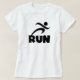 Corriendo camisetas, tazas, bolsos, agujeros, camisetas de tanques, carros y otras prendas de vestir y regalos para corredores con un corredor de siluetas negro y texto negro que dice RUN. Estas prendas de vestir y artículos de regalo son geniales para cualquiera que entrene para un 5K, cualquiera que sólo ame correr, o alguien que ya ha logrado varias maratones!