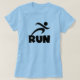 Corriendo camisetas, tazas, bolsos, agujeros, camisetas de tanques, carros y otras prendas de vestir y regalos para corredores con un corredor de siluetas negro y texto negro que dice RUN. Estas prendas de vestir y artículos de regalo son geniales para cualquiera que entrene para un 5K, cualquiera que sólo ame correr, o alguien que ya ha logrado varias maratones!