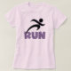 Corriendo camisetas, tazas, bolsos, agujeros, camisetas de tanques, carros y otras prendas de vestir y regalos para corredores con un corredor de siluetas negro y texto morado que lee RUN. Estas prendas de vestir y artículos de regalo son geniales para cualquiera que entrene para un 5K, cualquiera que sólo ame correr, o alguien que ya ha logrado varias maratones!