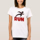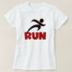 Corriendo camisetas, tazas, bolsas, agujeros, camisetas de tanques, carros y otras prendas de vestir y regalos para corredores con un corredor de siluetas negro y texto rojo que dice RUN. Estas prendas de vestir y artículos de regalo son geniales para cualquiera que entrene para un 5K, cualquiera que sólo ame correr, o alguien que ya ha logrado varias maratones!