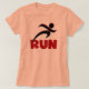 Corriendo camisetas, tazas, bolsas, agujeros, camisetas de tanques, carros y otras prendas de vestir y regalos para corredores con un corredor de siluetas negro y texto rojo que dice RUN. Estas prendas de vestir y artículos de regalo son geniales para cualquiera que entrene para un 5K, cualquiera que sólo ame correr, o alguien que ya ha logrado varias maratones!