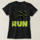 Diseño de ejecución con camisetas, caramelos, camisetas de manga larga, botones, bolsos, agujeros y otras prendas de vestir y regalos con un corredor de siluetas negro y un texto verde primavera que dice RUN. Si estás entrenando para correr tus primeros 5K, solo te encanta correr, o has hecho varias maratones, te encantarán estas prendas de vestir y artículos de regalo.