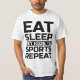 Camiseta cómoda para papás activos. ‘Comer, dormir, llevar a los niños a los deportes, repetir’ captura el ajetreo diario con humor.