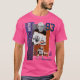 El color es muy bonito al natural, como la foto. El tejido es suave y de buena calidad. Sin defectos en el tintado, ni hilos sueltos o descosidos. Bien la impresión. Los bordes de las letras y el dibujo son nítidos, y el color contrasta muy bien con el de la camiseta.