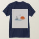 A minimalist illustration of a sailboat gliding toward a setting sun over calm ocean waves. The clean lines and limited color palette—orange, blue, and black—create a peaceful and elegant composition. Three birds fly overhead, adding a touch of motion to the serene scene.