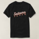 El color es muy bonito al natural, como la foto. El tejido es suave y de buena calidad. Sin defectos en el tintado, ni hilos sueltos o descosidos. Bien la impresión. Los bordes de las letras y el dibujo son nítidos, y el color contrasta muy bien con el de la camiseta.