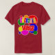 El color es muy bonito al natural, como la foto. El tejido es suave y de buena calidad. Sin defectos en el tintado, ni hilos sueltos o descosidos. Bien la impresión. Los bordes de las letras y el dibujo son nítidos, y el color contrasta muy bien con el de la camiseta.