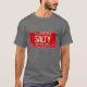 Travel back in time to the year 1969 with this vintage-inspired SALTY license plate design. Bold embossed-style cream text pops on the red contrast. The use of retro-style lettering, realistic screws and Sunshine State slogan keep the vintage vibe realistic. This unique graphic statement t-shirt is perfect for beach days, boat trips and everyday coastal life. | Vivid printing is recommended for non-white garments.