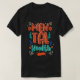 El color es muy bonito al natural, como la foto. El tejido es suave y de buena calidad. Sin defectos en el tintado, ni hilos sueltos o descosidos. Bien la impresión. Los bordes de las letras y el dibujo son nítidos, y el color contrasta muy bien con el de la camiseta.