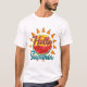 Este diseño combina dos símbolos clásicos del verano: el sol y la sandía. La mitad superior es un sol vibrante dibujado a mano con un patrón giratorio y rayos triangulares, mientras que la mitad inferior es una rebanada de sandía refrescante al estilo de las acuarelas. Las palabras "Hello Summer" se incorporan de manera lúdica, con "Hello" escrito sobre el sol en un audaz y ondulado tipo de letra y "Summer" sobre la sandía en un tipo de letra fresco y con texturas acuosas. Este es un diseño alegre y artístico perfecto para celebrar la temporada soleada.