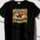 Aquí hay un diseño rústico de camisetas de estilo vintage con un vaquero solitario montando un caballo a través del desierto con un fondo dramático de atardecer y la frase "Salvaje y libre" 🤠 🌅 ✨