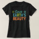 El diseño de la camiseta muestra el texto "Salven la belleza de la Tierra" en un esquema multicolor que promueve la conciencia ambiental y la importancia de proteger las maravillas naturales del planeta. A continuación, algunos detalles a considerar: Texto multicolor: Guardar: Esta palabra puede ser un color atrevido y llamativo, como el rojo, el naranja o el amarillo, para enfatizar la urgencia del mensaje. Tierra: Esta palabra podría ser un verde o azul tranquilizante, representando el mundo natural que pretendemos proteger. Belleza: Esta palabra puede ser una combinación de colores vibrante y ascendente, como un degradado que pasa de verde a azul o una combinación de rosa, púrpura y naranja. Fuente: El tipo de letra podría ser limpio y moderno, con una calidad ligeramente curvada o fluida, particularmente para "Belleza", para representar visualmente el mundo natural. Como alternativa, se podría utilizar un tipo de letra audaz e impactante para que todas las palabras transmitan un mensaje firme de acción. Elementos simbólicos (opcionales): Una representación de la Tierra (globo) podría colocarse cerca de "Salvar" o "Tierra" para representar el planeta que estamos tratando de proteger. Se podrían incorporar elementos naturales como montañas, árboles, océanos o animales cerca de la "belleza" para mostrar la belleza que queremos preservar. Impresión general: El diseño debería ser visualmente atractivo y comunicar efectivamente la importancia de tomar medidas para salvar la belleza natural de la Tierra. Es un mensaje de responsabilidad ambiental y apreciación por las maravillas del planeta.