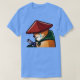 El color es muy bonito al natural, como la foto. El tejido es suave y de buena calidad. Sin defectos en el tintado, ni hilos sueltos o descosidos. Bien la impresión. Los bordes de las letras y el dibujo son nítidos, y el color contrasta muy bien con el de la camiseta.