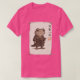 El color es muy bonito al natural, como la foto. El tejido es suave y de buena calidad. Sin defectos en el tintado, ni hilos sueltos o descosidos. Bien la impresión. Los bordes de las letras y el dibujo son nítidos, y el color contrasta muy bien con el de la camiseta.