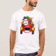 Papá Noel y el reno rojo de la nariz que conduce en regalos y presentes de distribución del navidad de un coche deportivo rojo