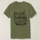 Esta camiseta verde oliva muestra el texto "SARCASM fresco servido DIARIAMENTE" en una letra negra juguetona. La palabra "fresco" y "servido" están en un guión que fluye, mientras que "SARCASM" y "DIARIO" están en un estilo más audaz, ligeramente caprichoso. Las estrellas pequeñas y los diseños florales se suman al tono alegre pero sarcástico del mensaje.