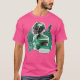 El color es muy bonito al natural, como la foto. El tejido es suave y de buena calidad. Sin defectos en el tintado, ni hilos sueltos o descosidos. Bien la impresión. Los bordes de las letras y el dibujo son nítidos, y el color contrasta muy bien con el de la camiseta.