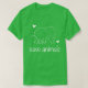 El color es muy bonito al natural, como la foto. El tejido es suave y de buena calidad. Sin defectos en el tintado, ni hilos sueltos o descosidos. Bien la impresión. Los bordes de las letras y el dibujo son nítidos, y el color contrasta muy bien con el de la camiseta.