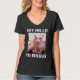 Camiseta con cuello en V de mujer, Negro, XL de adulto