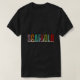 El color es muy bonito al natural, como la foto. El tejido es suave y de buena calidad. Sin defectos en el tintado, ni hilos sueltos o descosidos. Bien la impresión. Los bordes de las letras y el dibujo son nítidos, y el color contrasta muy bien con el de la camiseta.
