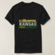 La clásica camiseta oscura presenta una panorámica de Kansas de estilo retro en una silueta de forma de estado.