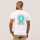 La conciencia del escleroderma utiliza una cinta verde azulada para concienciar sobre su causa. El arte de la camisa muestra una verde azulada pintura de ángel de cinta de reconocimiento. El mensaje de la camiseta del ángel de la conciencia dice "Conciencia sobre escleroderma". Hay una gran imagen en la parte posterior de la camisa y una imagen más pequeña en la parte delantera de la camisa. La ropa de arte de la cinta de ángel de la conciencia verde azulada se puede personalizar con mensajes personalizados para hacer ropa de evento de gran causa para camisetas de recaudación de fondos, camisetas de caminatas del equipo de grupo, regalos de camisetas de concientización u otros eventos de causa especial para la mercadería, para ayudar a aumentar la conciencia de esta causa en el público por la ayuda de la sociedad para crear ayuda y causar cambio.