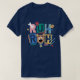 El color es muy bonito al natural, como la foto. El tejido es suave y de buena calidad. Sin defectos en el tintado, ni hilos sueltos o descosidos. Bien la impresión. Los bordes de las letras y el dibujo son nítidos, y el color contrasta muy bien con el de la camiseta.