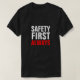 Mucha gente ama divertirse o tomar riesgos sin el pensamiento en su seguridad. Déle un recordatorio apacible a través de esta camisa que lea la "seguridad primero. Siempre."