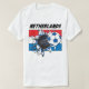 Camisetas y mercadería holandesa para los hinchas de fútbol del equipo holandés. Regalos de fútbol para hinchas de fútbol y futbolistas. Foto de una pelota de fútbol reventando a través de la bandera de los Países Bajos. Productos y equipo de fútbol.