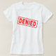 Mensaje denegado de una camiseta con sello de goma roja