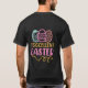 El color es muy bonito al natural, como la foto. El tejido es suave y de buena calidad. Sin defectos en el tintado, ni hilos sueltos o descosidos. Bien la impresión. Los bordes de las letras y el dibujo son nítidos, y el color contrasta muy bien con el de la camiseta.