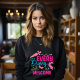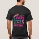 El color es muy bonito al natural, como la foto. El tejido es suave y de buena calidad. Sin defectos en el tintado, ni hilos sueltos o descosidos. Bien la impresión. Los bordes de las letras y el dibujo son nítidos, y el color contrasta muy bien con el de la camiseta.