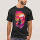 Un diseño de paisaje montañoso fresco de estilo retro con un toque colorido, donde se puede practicar senderismo al atardecer.