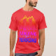 El color es muy bonito al natural, como la foto. El tejido es suave y de buena calidad. Sin defectos en el tintado, ni hilos sueltos o descosidos. Bien la impresión. Los bordes de las letras y el dibujo son nítidos, y el color contrasta muy bien con el de la camiseta.