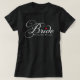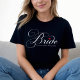 Camiseta de novia negra linda y elegante con texto de Novia en escritura blanca y corazón rojo, se puede personalizar con su nombre de "Señora Futurista".