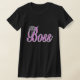 Ella es una mujer, rosa de los amores, y corre la oficina o el negocio con confianza y seguridad en sí mismo. Ella es el jefe, profesional siempre. Diseño de la camiseta del bonito regalo para el día del jefe, los días de fiesta o cualquier ocasión.