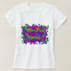 Camiseta con un fondo verde y violeta de estilo grunge salpicada de estrellas naranjas y verdes mágicas y brillantes y la palabra "Truco o truco" escrita en verde brillante. Un diseño de personalizable morado, verde y naranja para que añadas tu propio texto, imágenes e ideas. El texto puede cambiarse fácilmente utilizando la plantilla proporcionada o haciendo clic en el botón "Personalizar" para realizar más modificaciones. Disponible en todas las opciones de estilo. Creado mediante técnicas digitales por Jess Perry