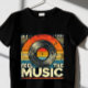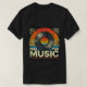 Aquí hay otro diseño de camisetas de estilo vintage con un astronauta retro flotando en el espacio con un planeta neón y la frase "sentir la música" 🌌
