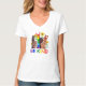 Camiseta con cuello en V de mujer, Negro, XL de adulto