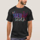 El color es muy bonito al natural, como la foto. El tejido es suave y de buena calidad. Sin defectos en el tintado, ni hilos sueltos o descosidos. Bien la impresión. Los bordes de las letras y el dibujo son nítidos, y el color contrasta muy bien con el de la camiseta.