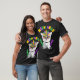 El color es muy bonito al natural, como la foto. El tejido es suave y de buena calidad. Sin defectos en el tintado, ni hilos sueltos o descosidos. Bien la impresión. Los bordes de las letras y el dibujo son nítidos, y el color contrasta muy bien con el de la camiseta.