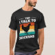 Este diseño presenta un ilustracion humorístico y adorable de una persona hablando con pollos, perfecto para cualquier amante de los pollos o cualquiera que disfrute de diseños extravagantes y lindos.