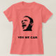 Camisa de mujer que muestra la imagen de Obama y dice "Sí podemos"