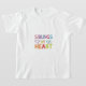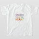 El texto descansa limpiamente en la parte delantera de la camisa, tal vez en un color brillante y agradable.El texto está solo, tal vez en una letra lúdica con un solo corazón colocado estratégicamente cerca de las palabrasEl tono general puede ser reconfortante, lúdico o fresco dependiendo del tipo de letra, los colores y el estilo de ilustracion elegidos