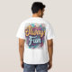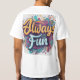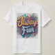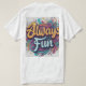 Diversión geométricaUna camiseta audaz y elegante con la frase "siempre divertido" en colores contrastantes contra un fondo de patrón geométrico.