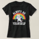 Estar orgulloso de quién eres y mostrarlo con esta linda camiseta con un hermoso unicornio personalizado y un arcoíris colorido, con la leyenda "Siempre seas tú mismo" con letras blancas.