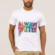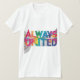 El diseño de la camiseta "Siempre unidos" presenta un poderoso gráfico de manos entrelazadas que forman una forma cardíaca en el centro. Rodeando el corazón hay un guión audaz y dinámico que dice "Siempre unido". El diseño combina una sensación de conexión y fuerza, lo que lo convierte en una elección ideal para aquellos que valoran la solidaridad y la unión.