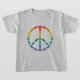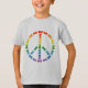 Un colorido diseño del logo de la paz con huesos de perros pequeños.