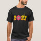 El color es muy bonito al natural, como la foto. El tejido es suave y de buena calidad. Sin defectos en el tintado, ni hilos sueltos o descosidos. Bien la impresión. Los bordes de las letras y el dibujo son nítidos, y el color contrasta muy bien con el de la camiseta.