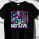 Aquí hay otro diseño de camisetas inspirado en anime y juegos que presenta un controlador de juegos pixelado con efectos de neón y un futurista fondo de ciberpunk, con la frase "Siguiente nivel" 🎮 ✨ 🕹️